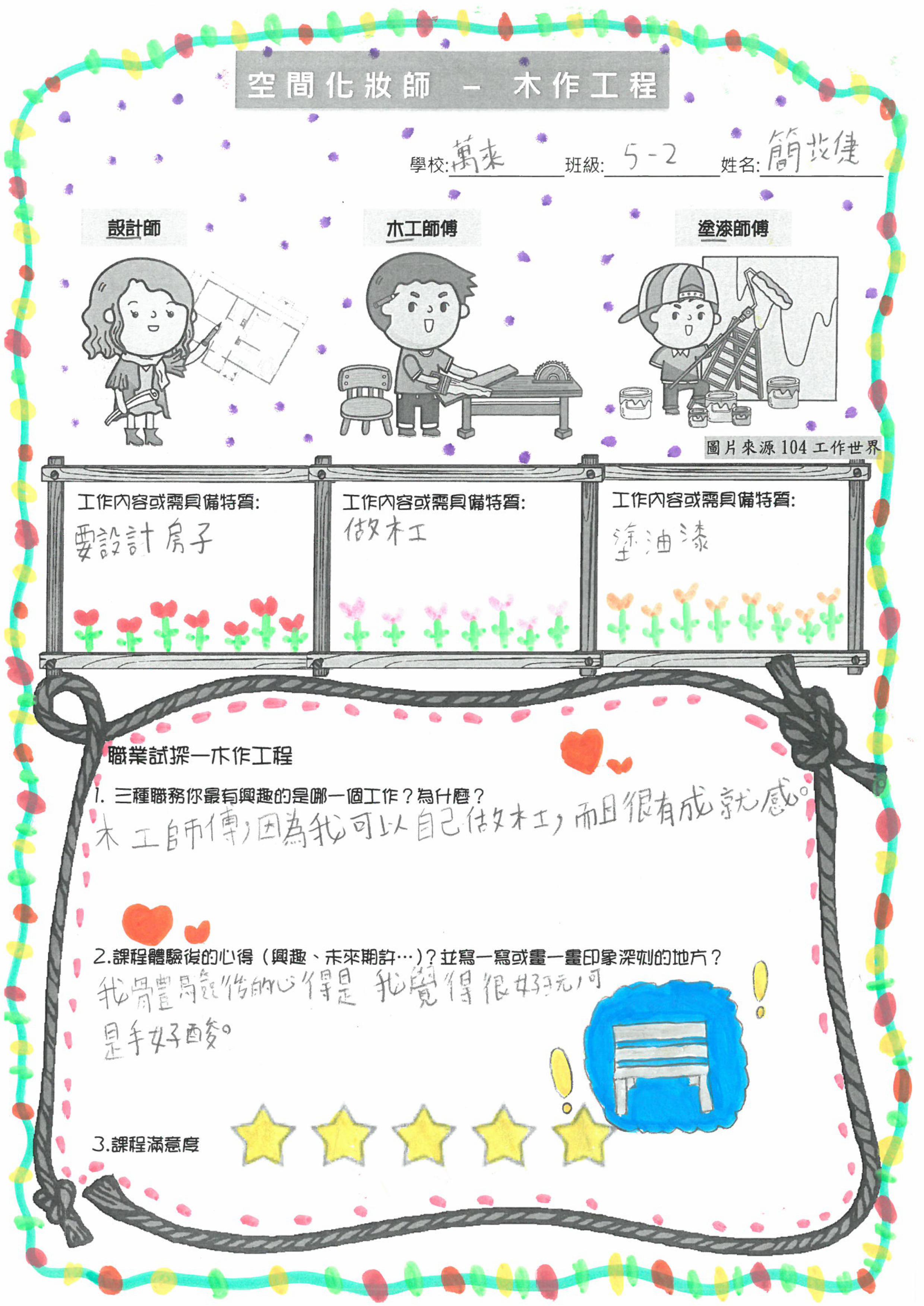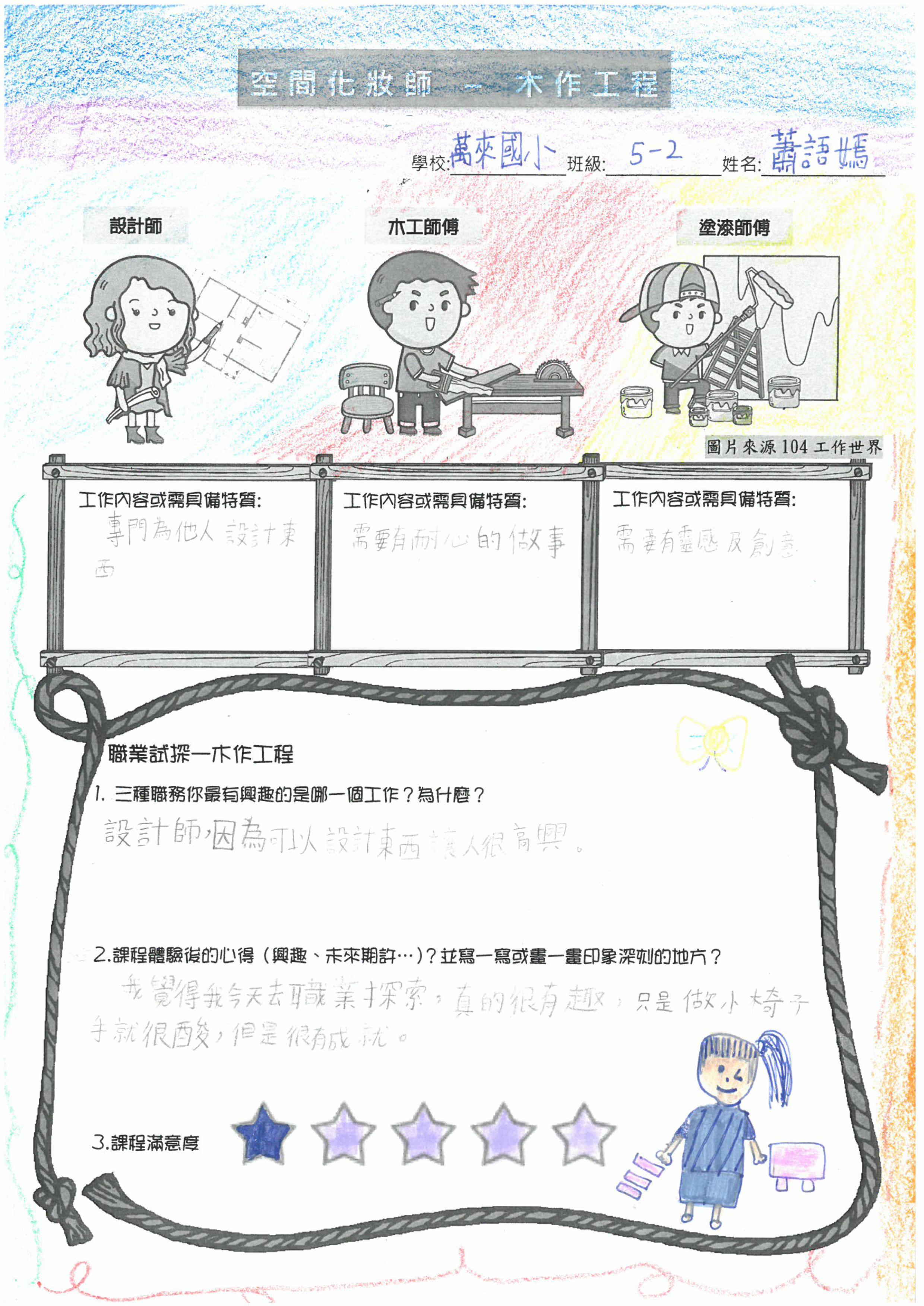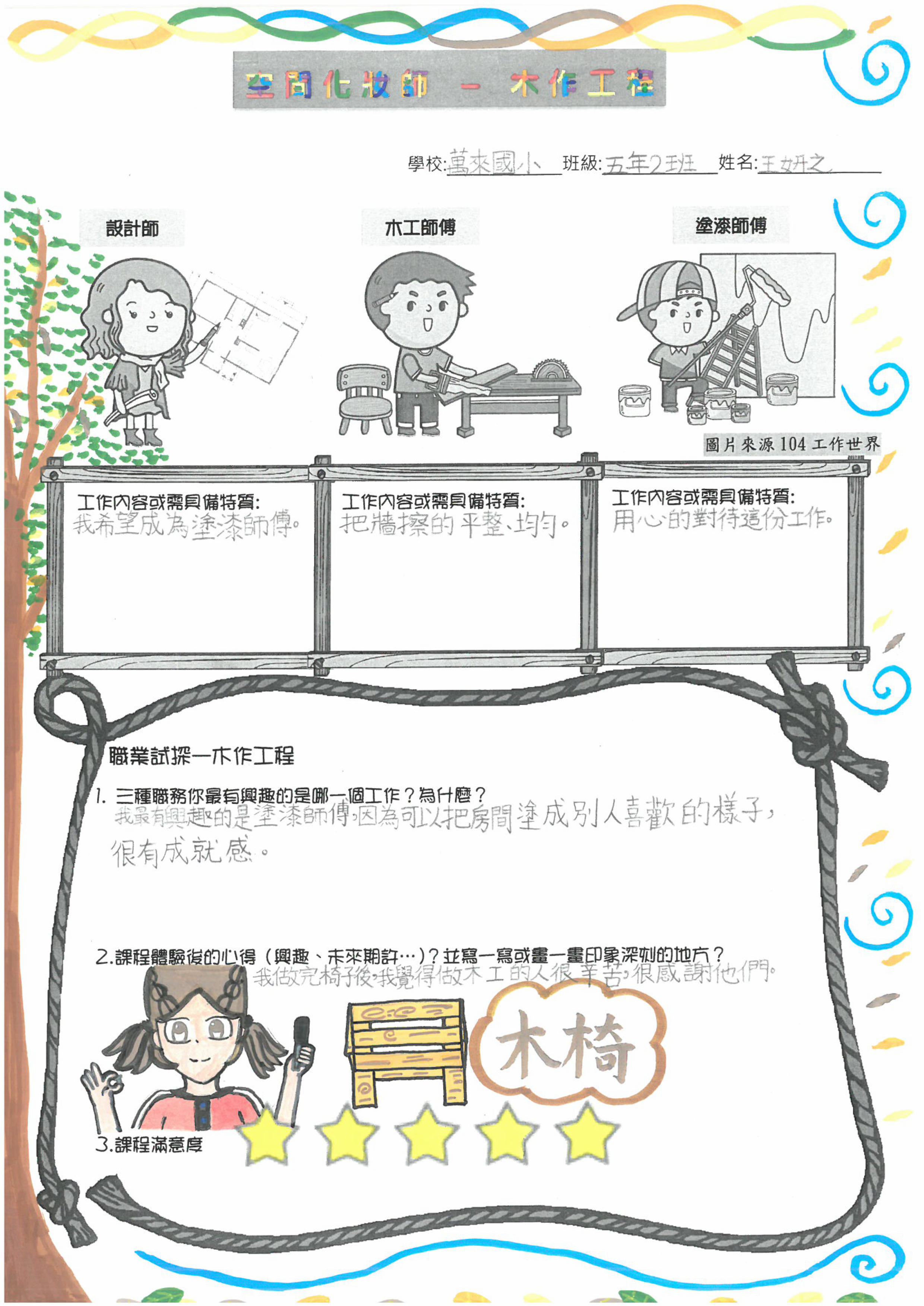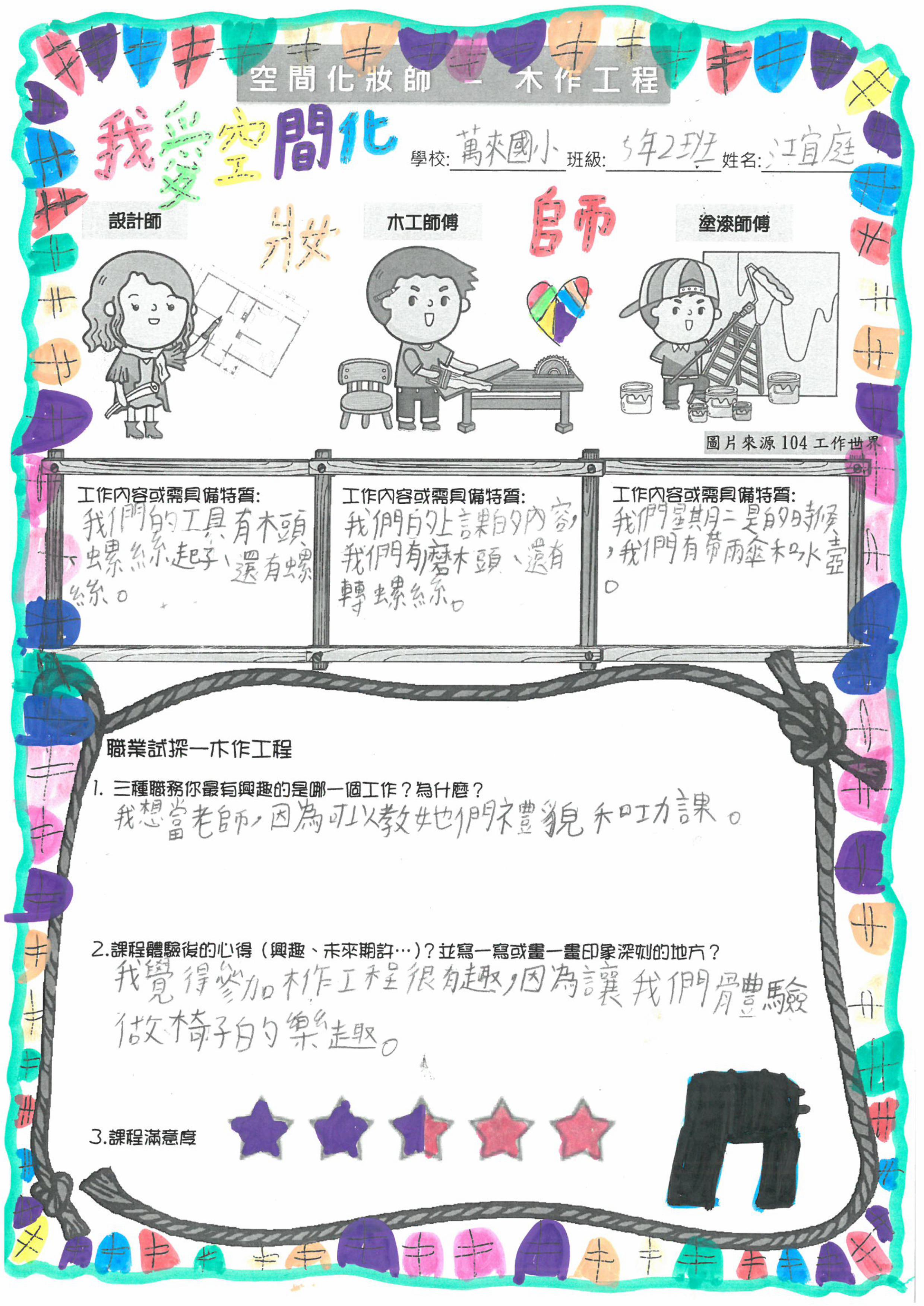 2.我覺得今天的職業探索,真的很有趣,只是做小椅子手就很酸,但是很有成就感。