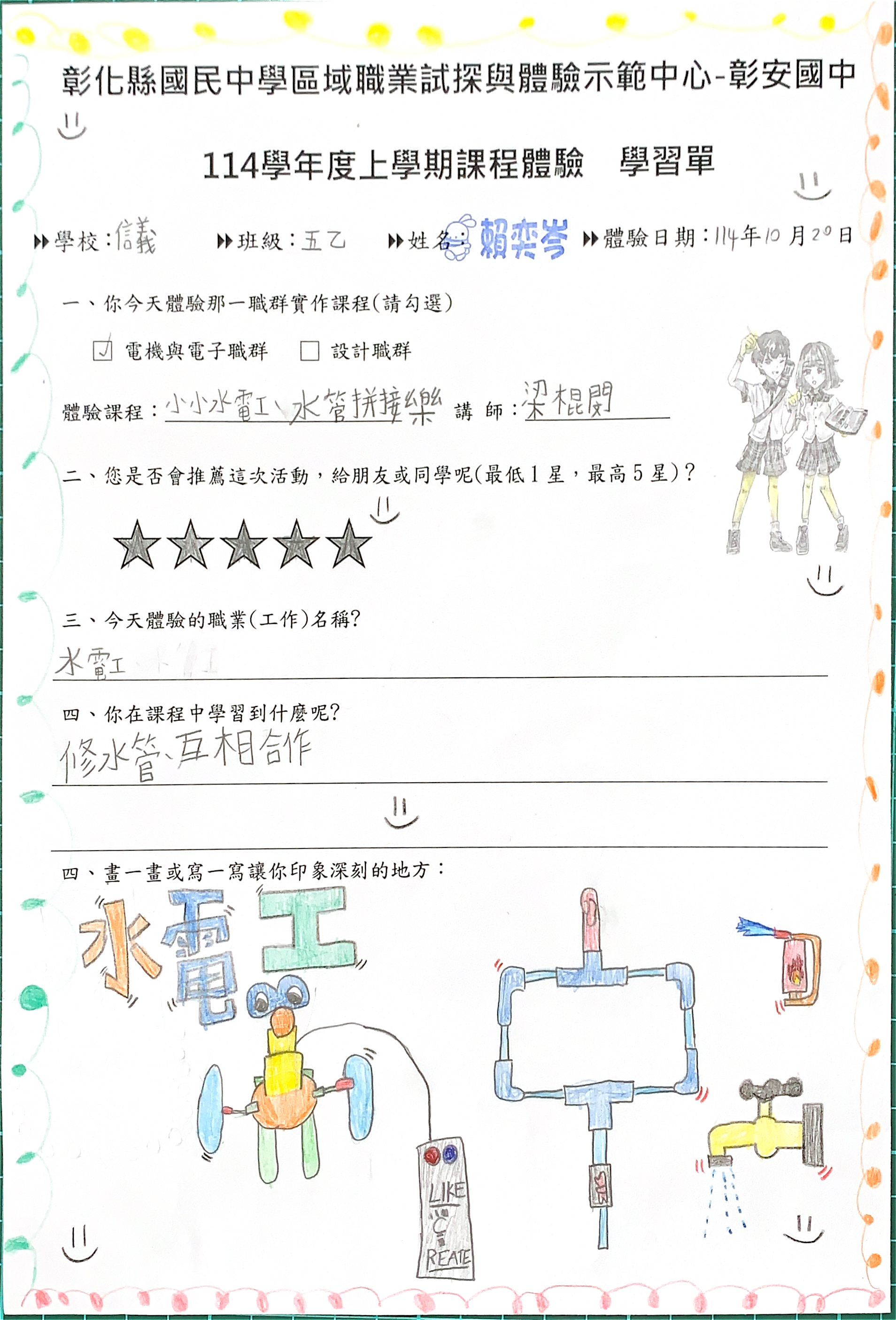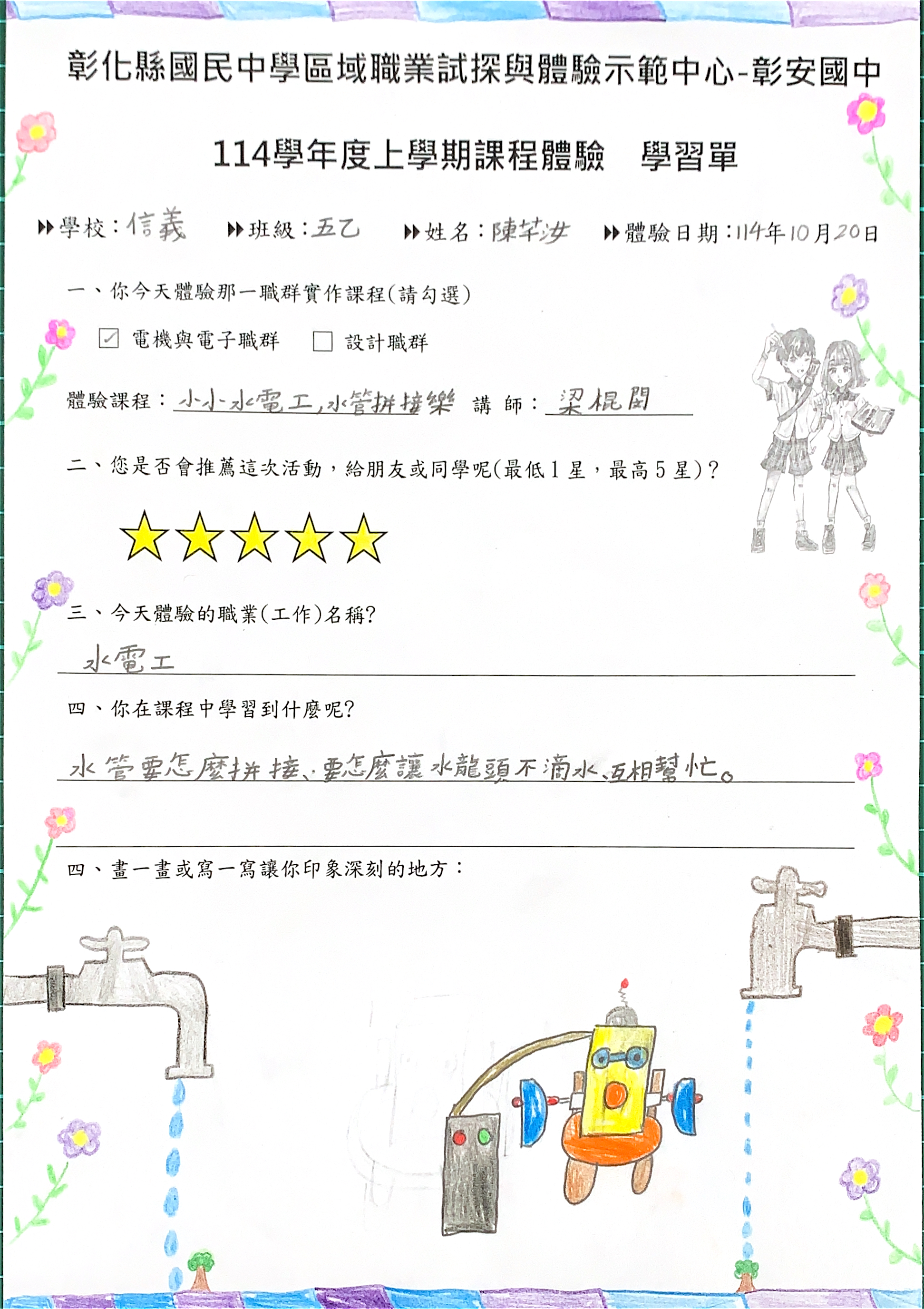 1.我在課程中學習到了如何拼接水管,修理水龍頭讓水管不會漏水,團隊合作。