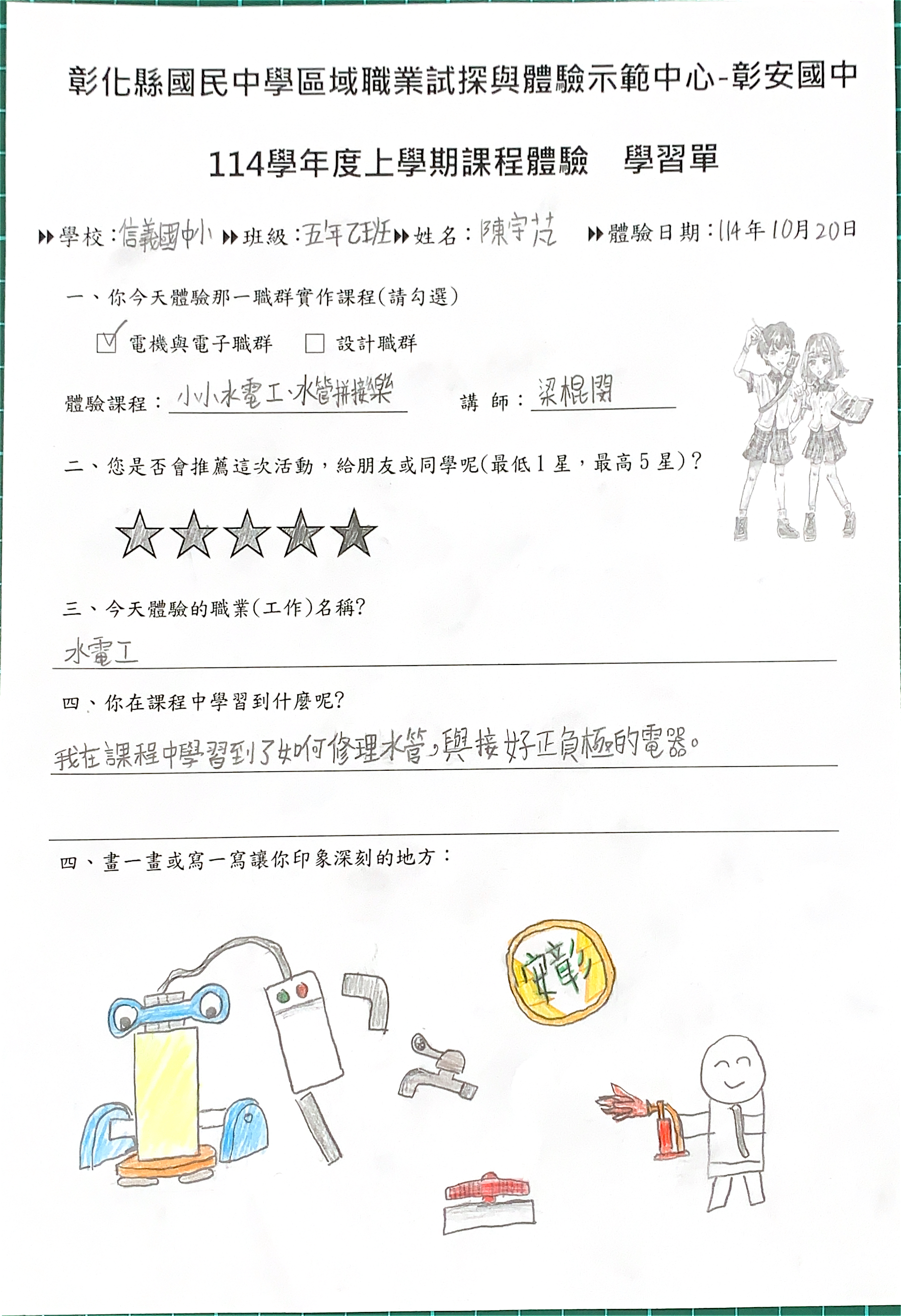 2.我在課程中學習到了如何修理水管,與接好正、負極的電器。