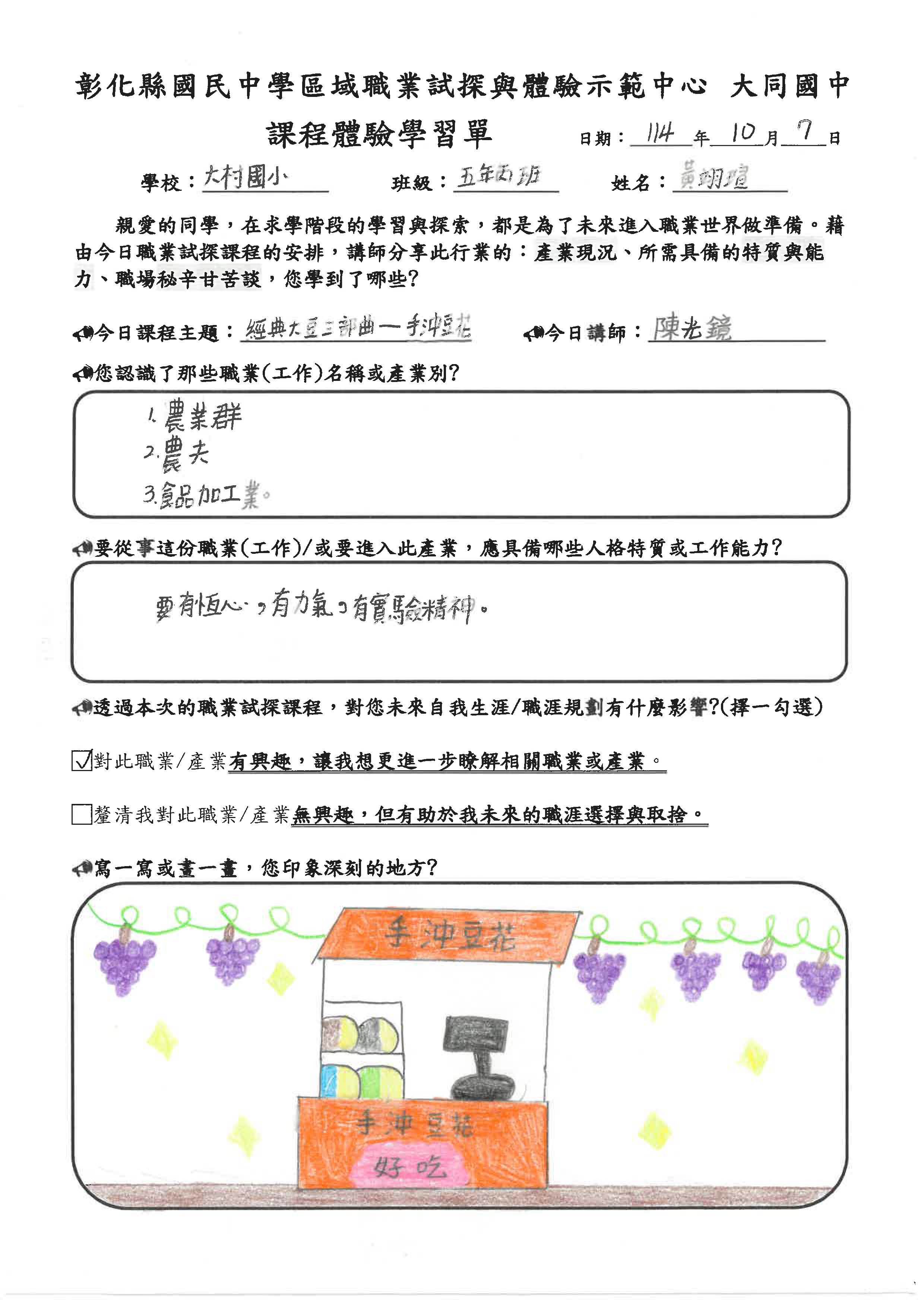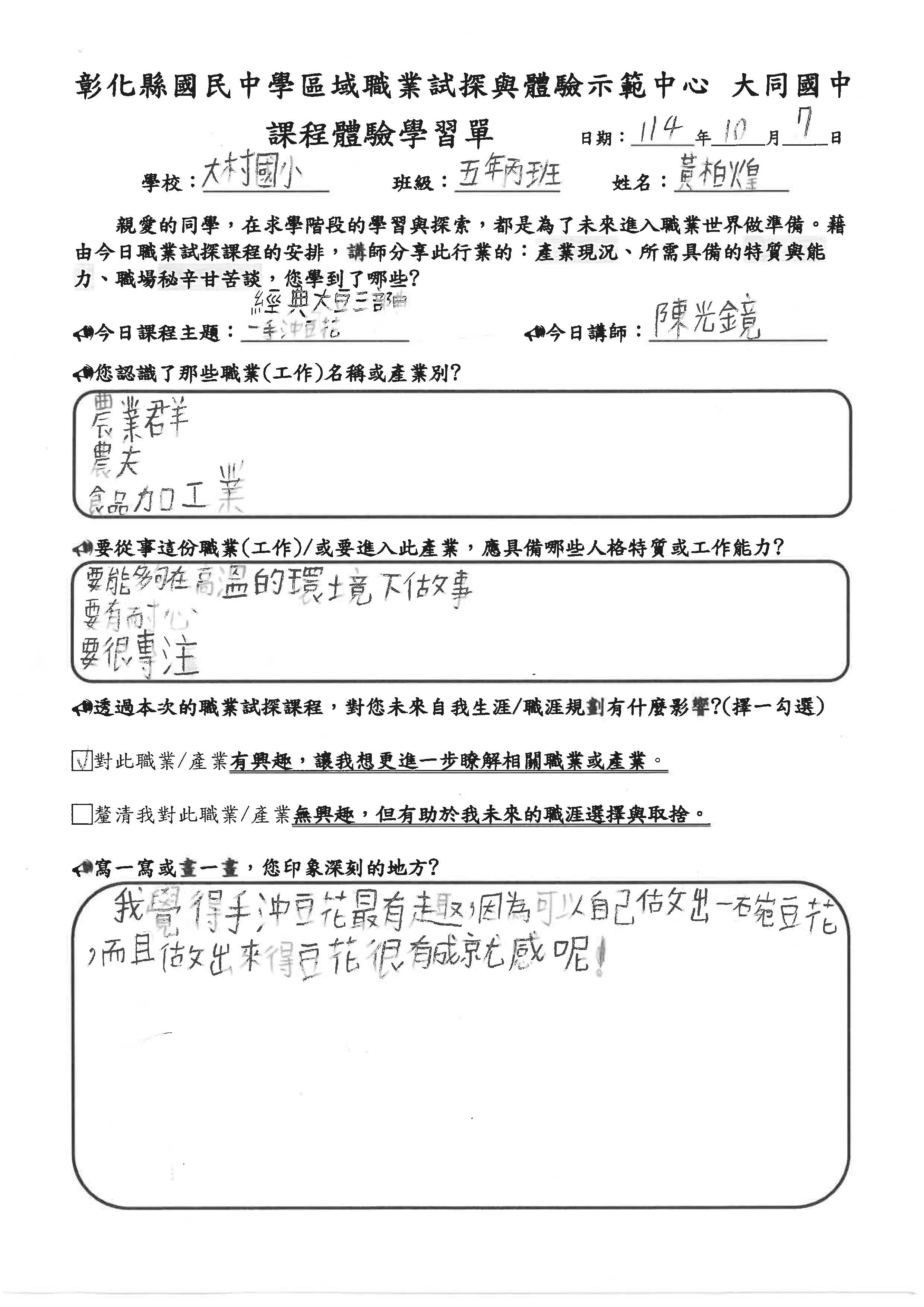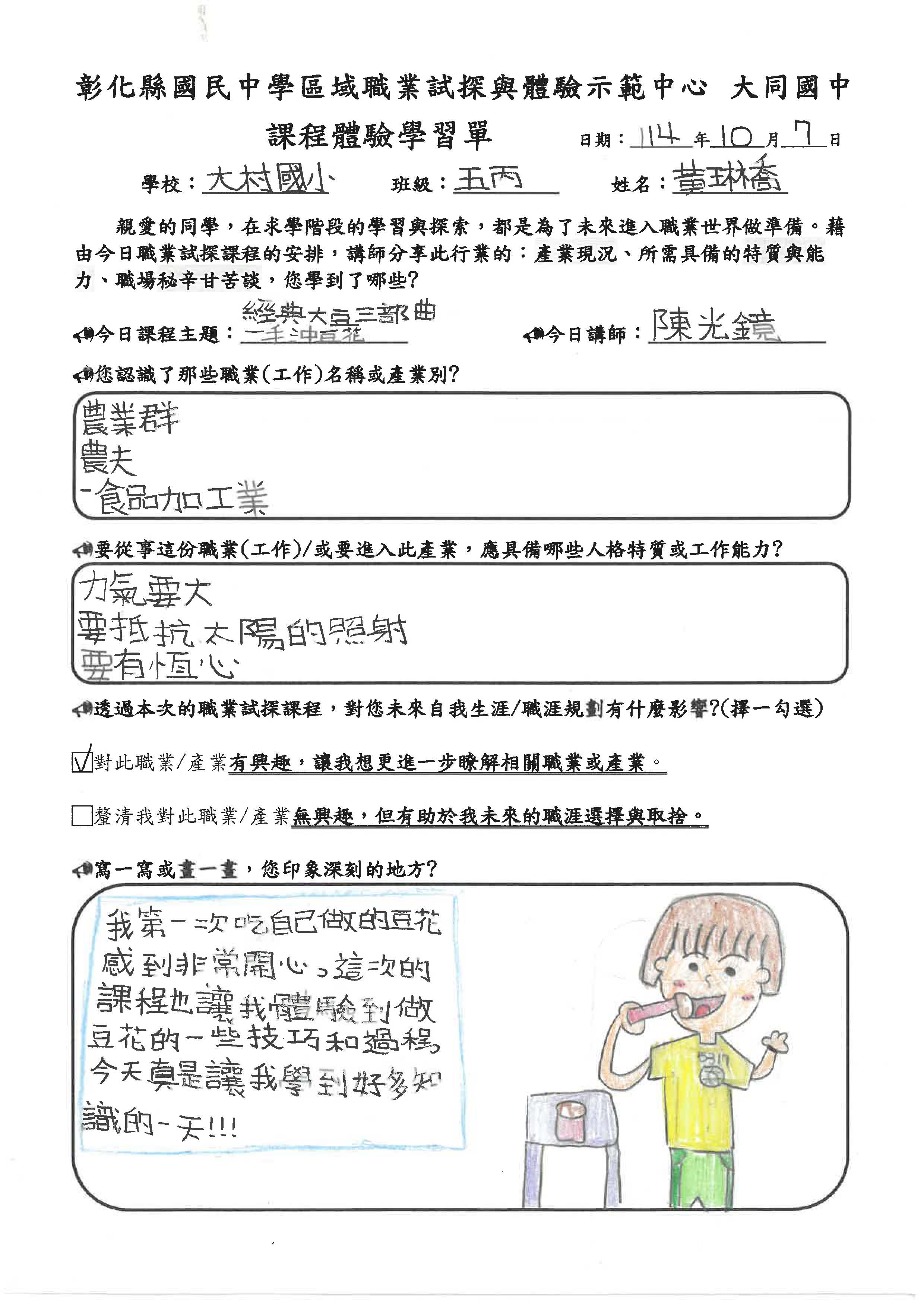 第一次吃到自己做的豆花我感到非常開心,這次的課程讓我體驗到製作豆花的技巧與過程,今天的課程讓我學到很多知識。