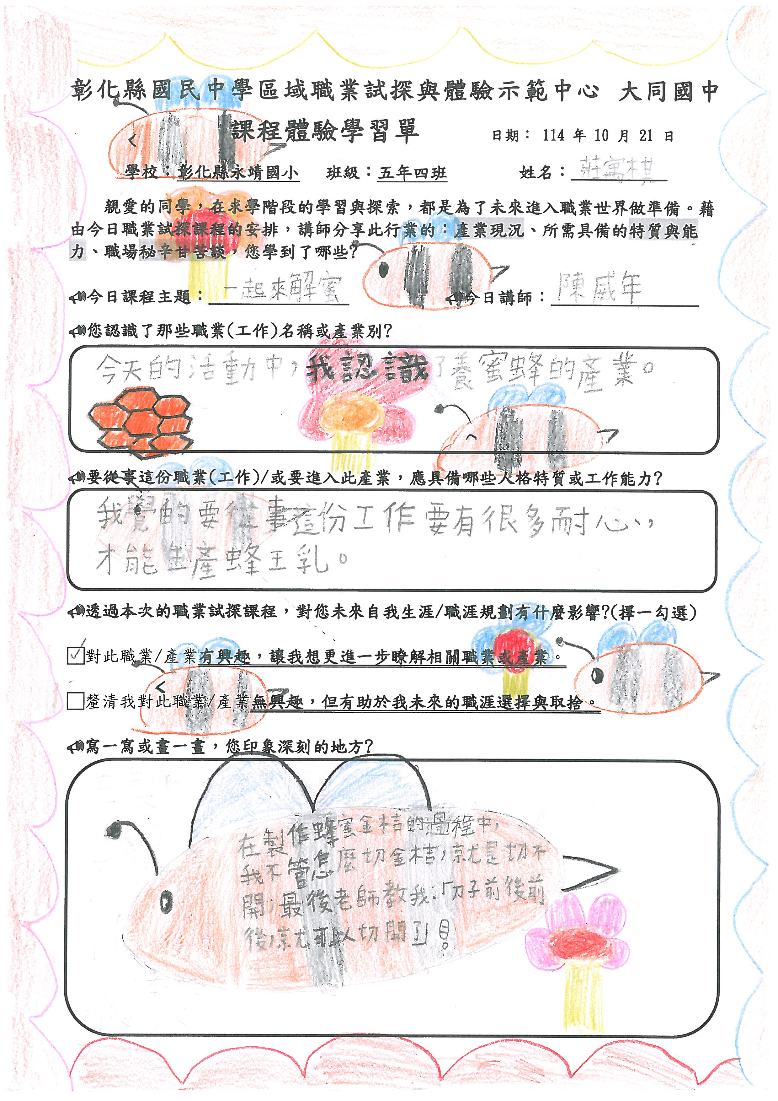 3.了解蜜蜂與人類的關係,更加愛護小昆蟲,也知道遇到蜂群攻擊時如何保護自己。