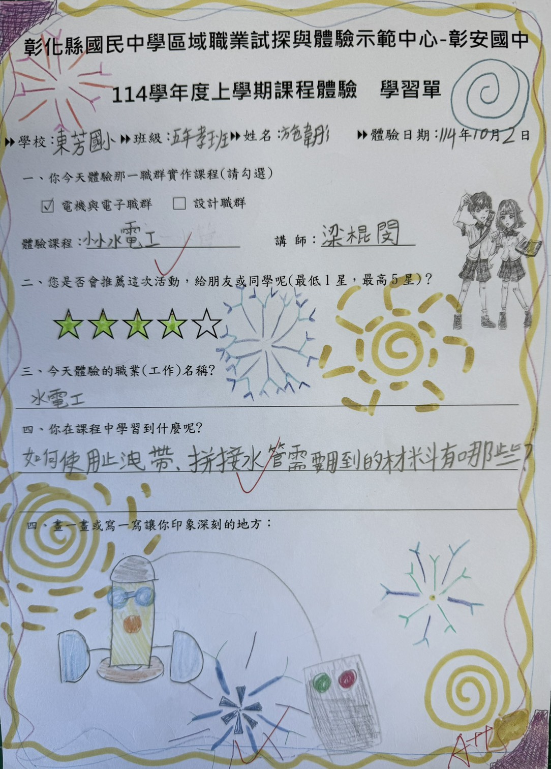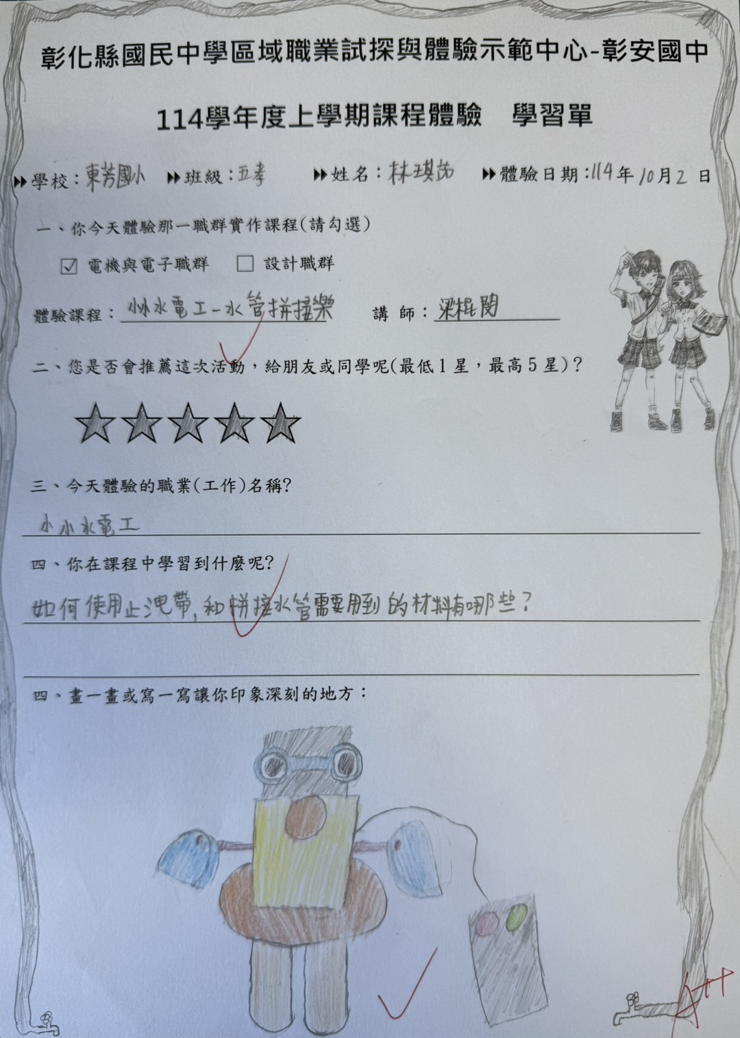 透過專業電機、電子群的講師,指導學生利用各種不同造型的水管拼接、組合以及空間立體感的呈現,讓學生從中體現不同的教育功能。建立點、線、面的空間概念,學習體驗不同職業組裝拼接技巧,更藉由小組間相互合作,增進專注力、啟發對立體模具圖形的想像力,享受自我操作之樂趣。