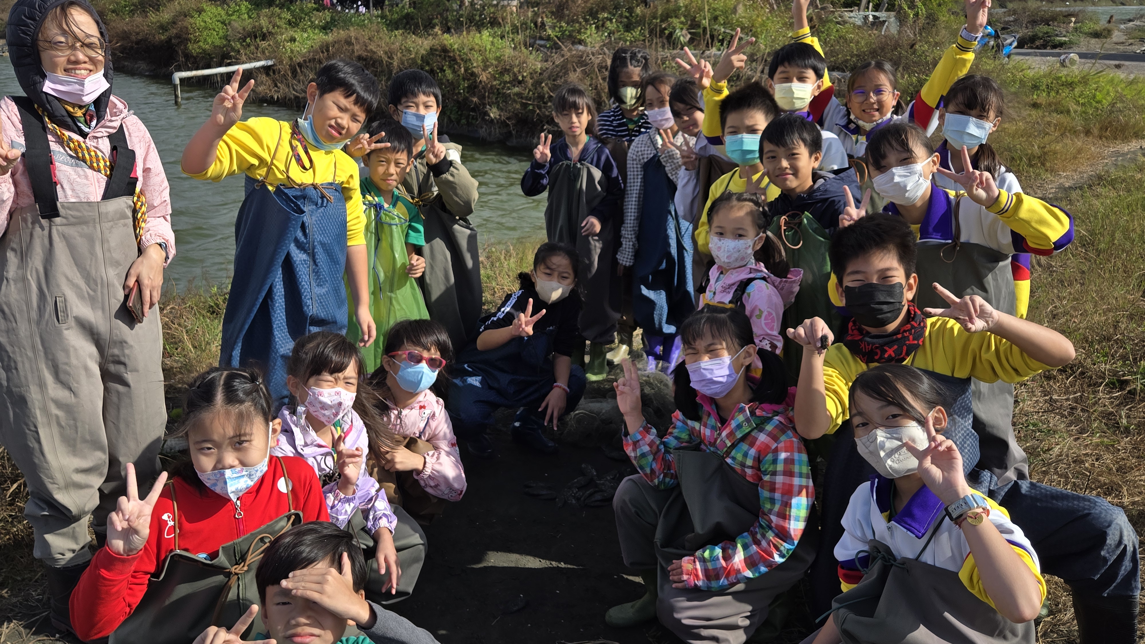 這次的職探參訪課程帶給學生滿滿的收穫與驚喜。第一站我們來到彰化縣芳苑鄉的哈哈魚場,一踏入場域就感受到濃厚的海味與漁村風情。換上青蛙裝後,大家興奮又緊張地走進魚塭養殖區,開始體驗摸蛤蜊、拉蛇籠、牽罟及划竹筏等活動。平常只在課本上看過的捕魚方式,竟然能親自操作,讓學生覺得既新鮮又刺激。尤其在泥地裡摸蛤蜊的時候,手指碰到殼的那一瞬間,彷彿找到了寶藏,大家都驚呼連連,笑聲不停,整個過程充滿驚奇與樂趣。