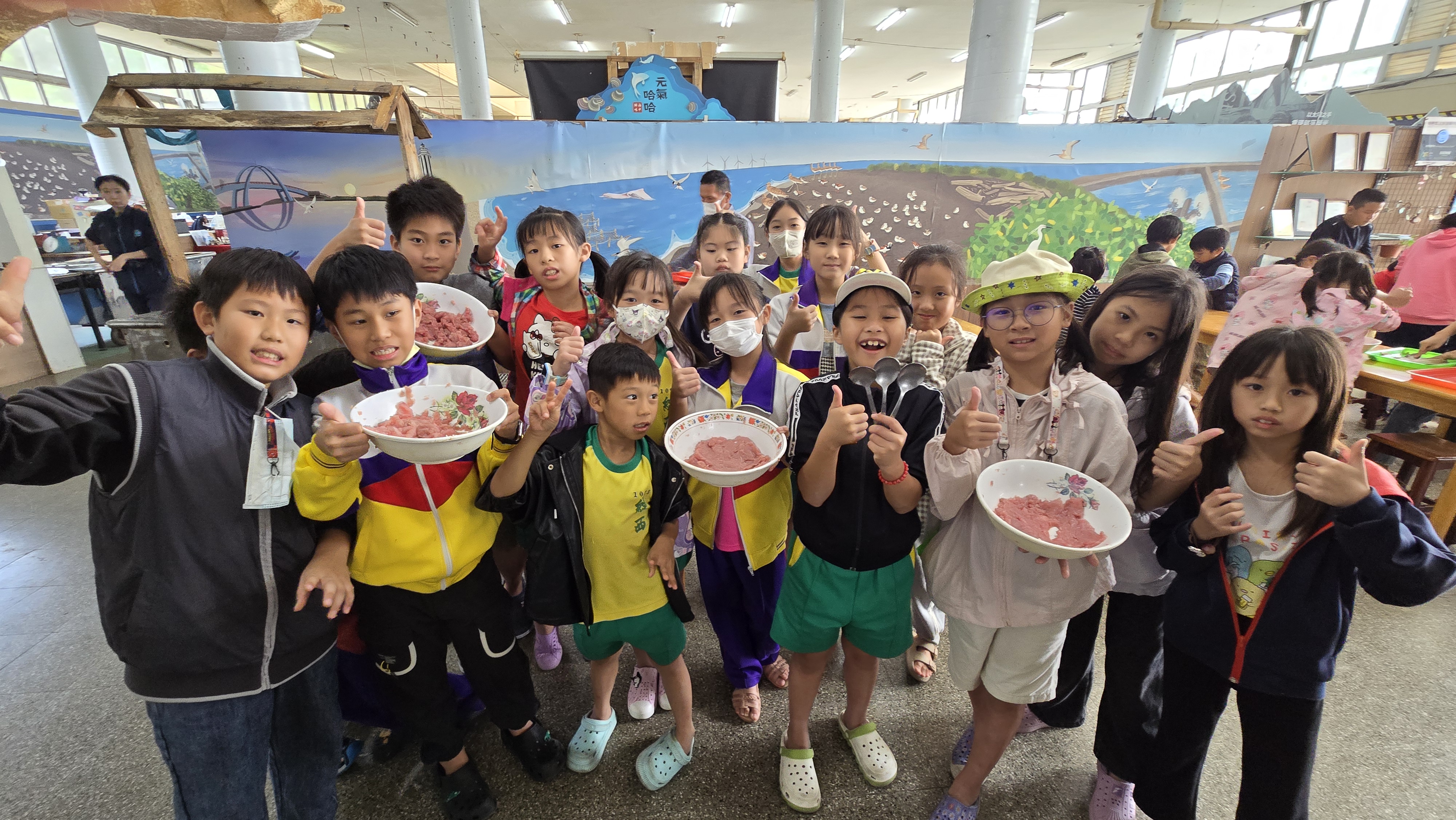 午餐後緊接著體驗手作魚丸。從一開始剔魚肉、壓成泥,到調味、整形,每一道工序都需要耐心與技巧。雖然學生們直嚷著手有點酸,但看著自己的魚丸慢慢成形,內心充滿成就感。最後喝到自己做的魚丸湯和魚煎餅,那種新鮮又溫暖的味道,是外面吃不到的,也讓學生們更深刻體會到漁民工作的不易與食物的珍貴。
