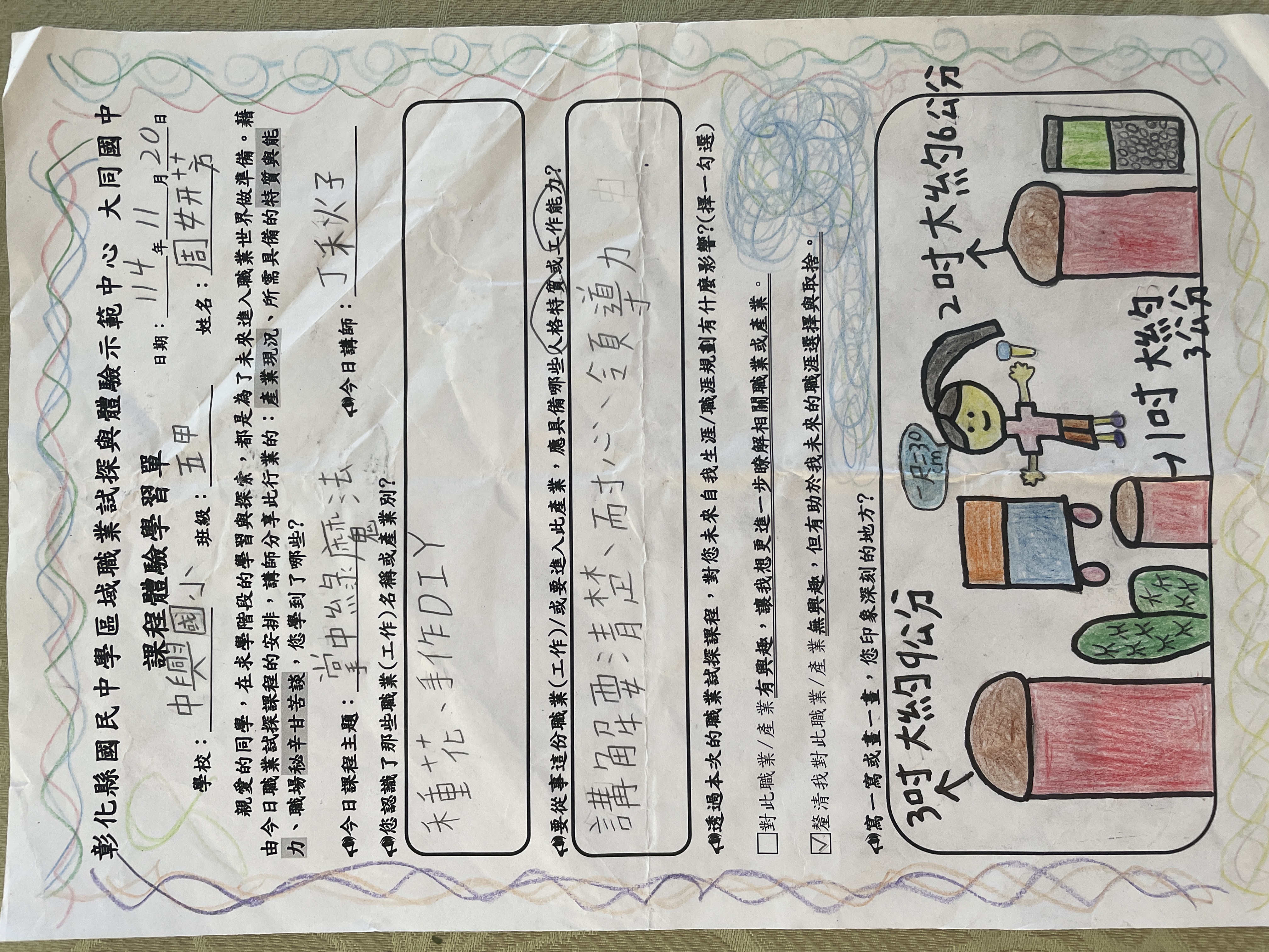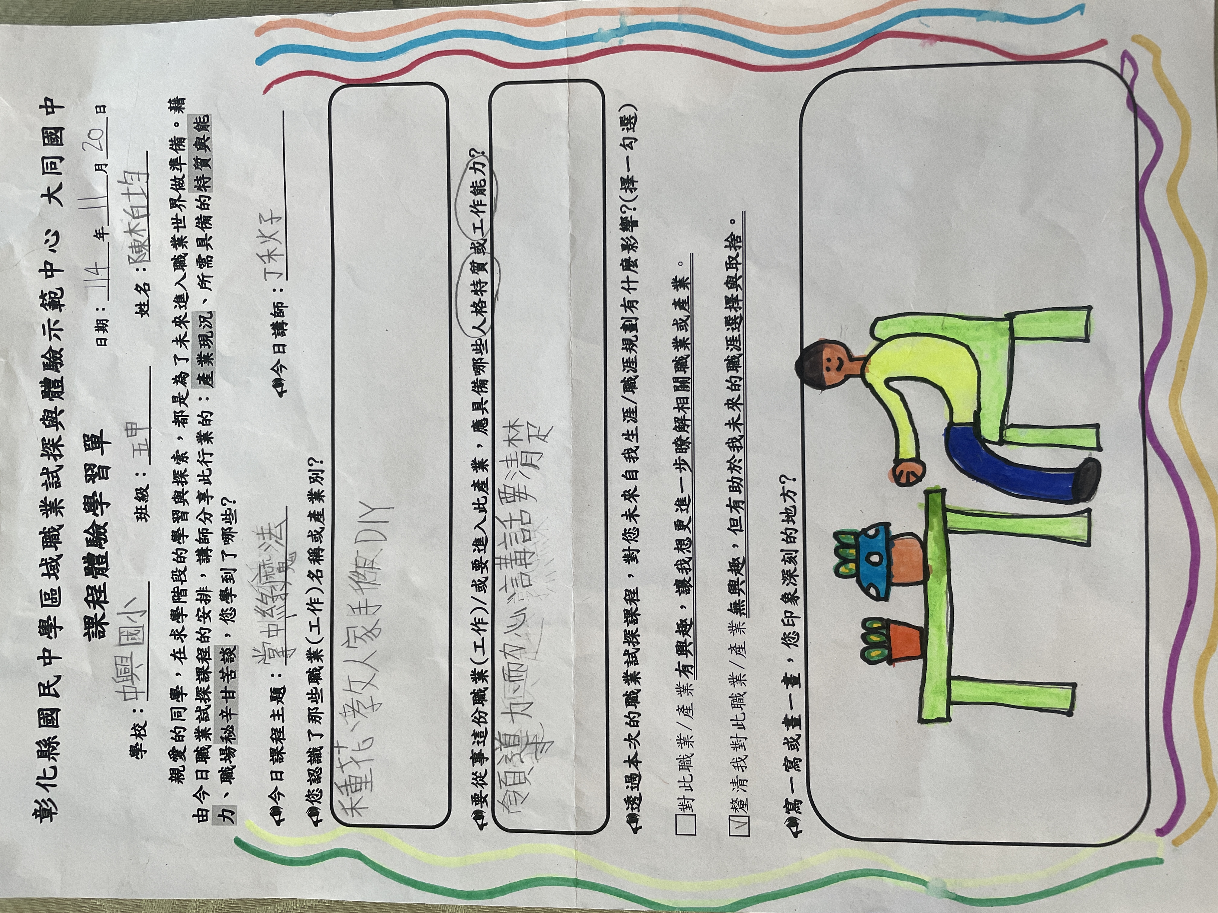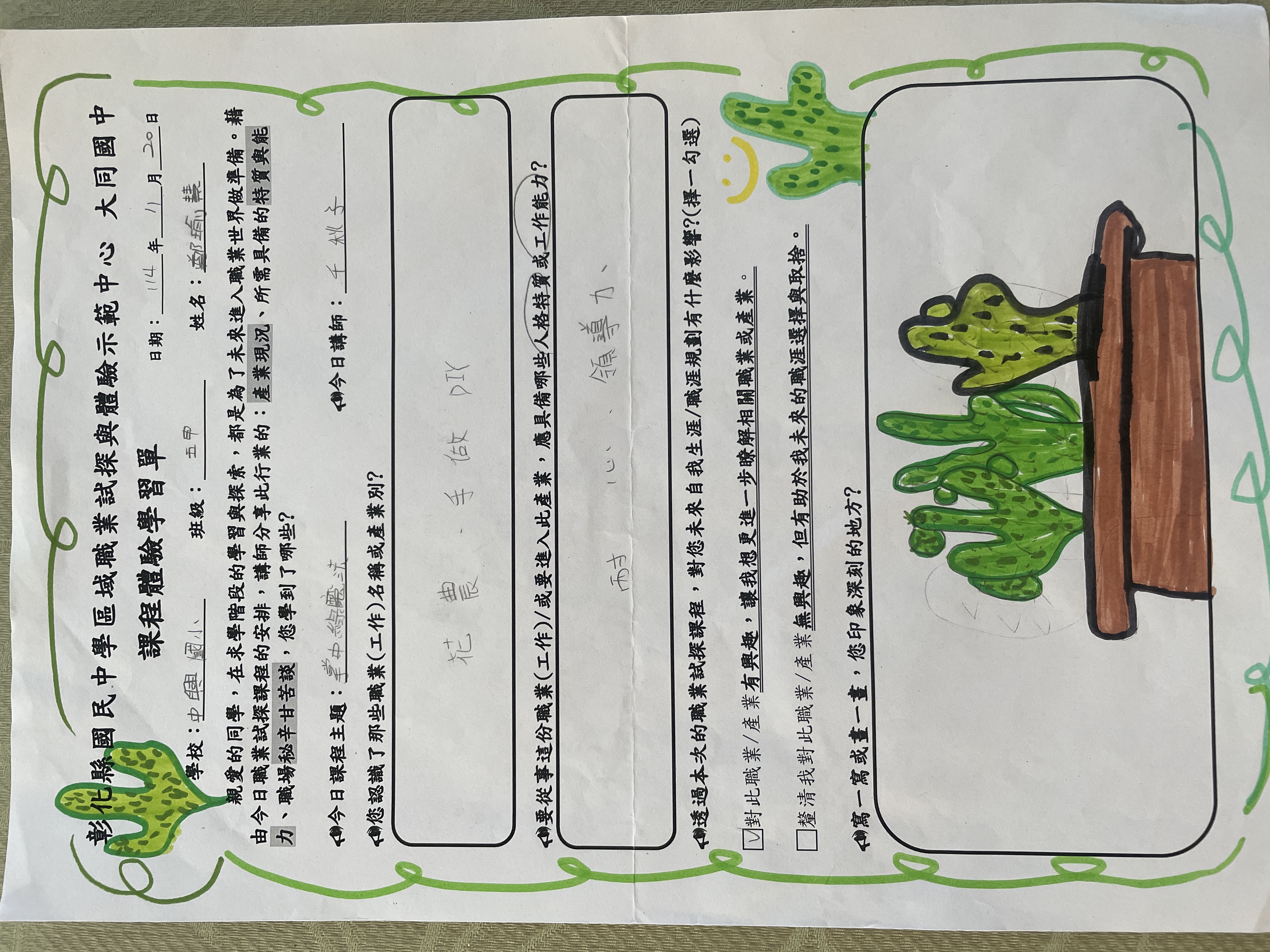 參加此次的職探中心所開設的課程,由瑞楓農場經營者丁秋子老師整個能廠經營,從培土到栽種,從植栽到包裝組盆........,整個產業經營鏈的運作是需要具有耐心與觀察力、審美觀,也要不怕髒、不怕蟲,不斷的為植務家庭利用分株法、嫁接法、扦插法,繁衍世代。這樣的事業,讓我覺得具有活力和生命力,是令人喜悅的事!
