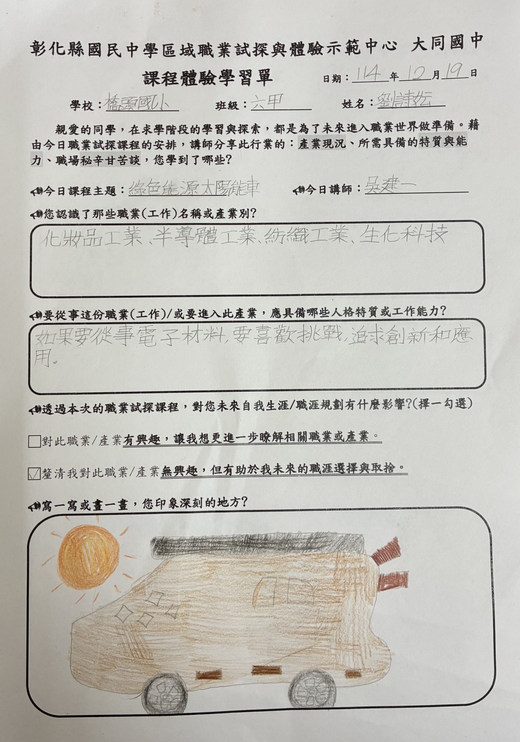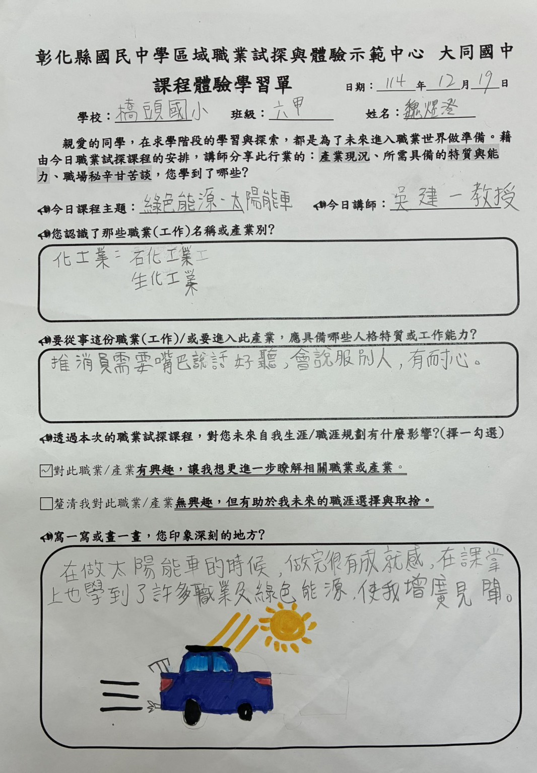 職探課程:綠能科技大步走-太陽能車
