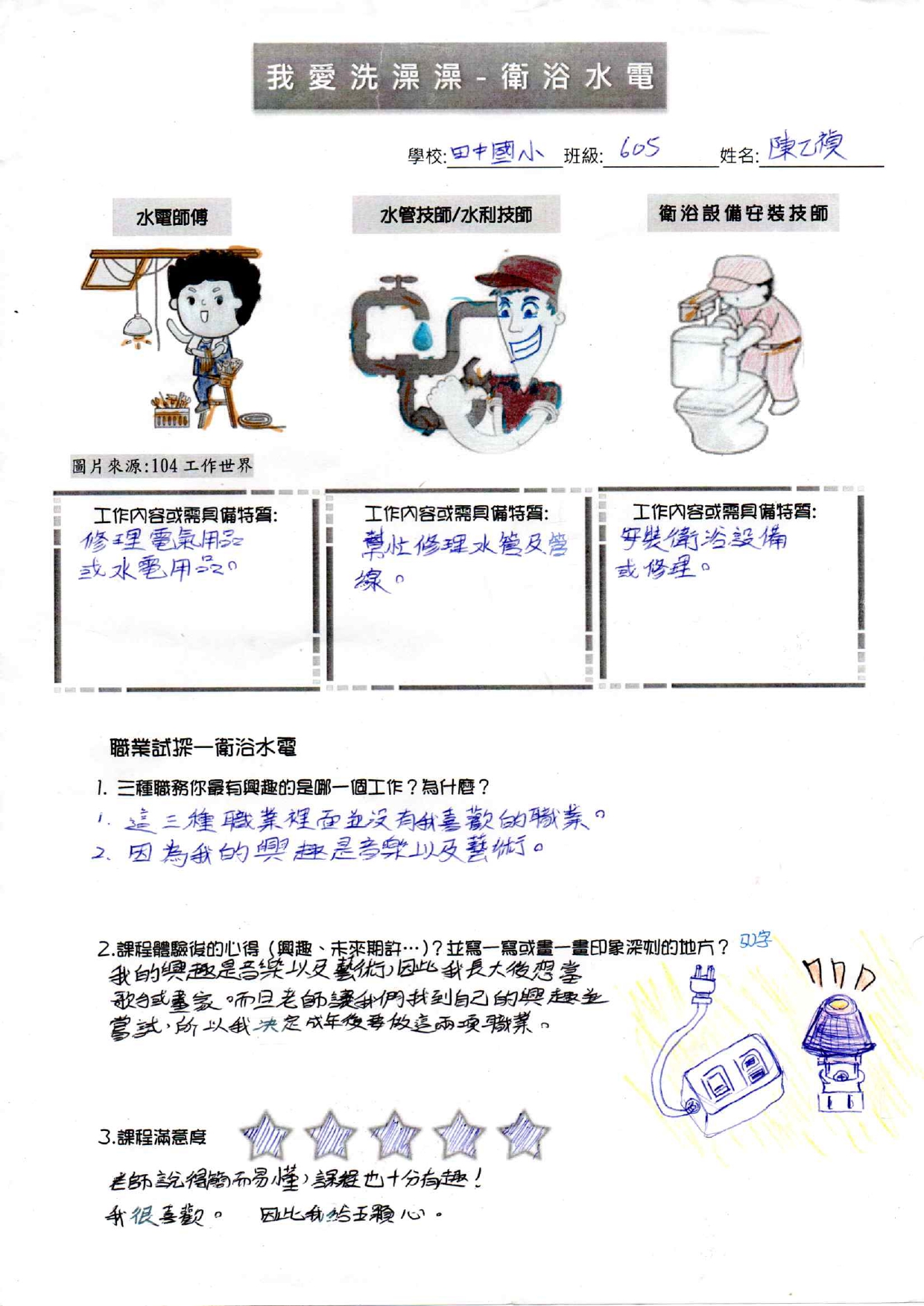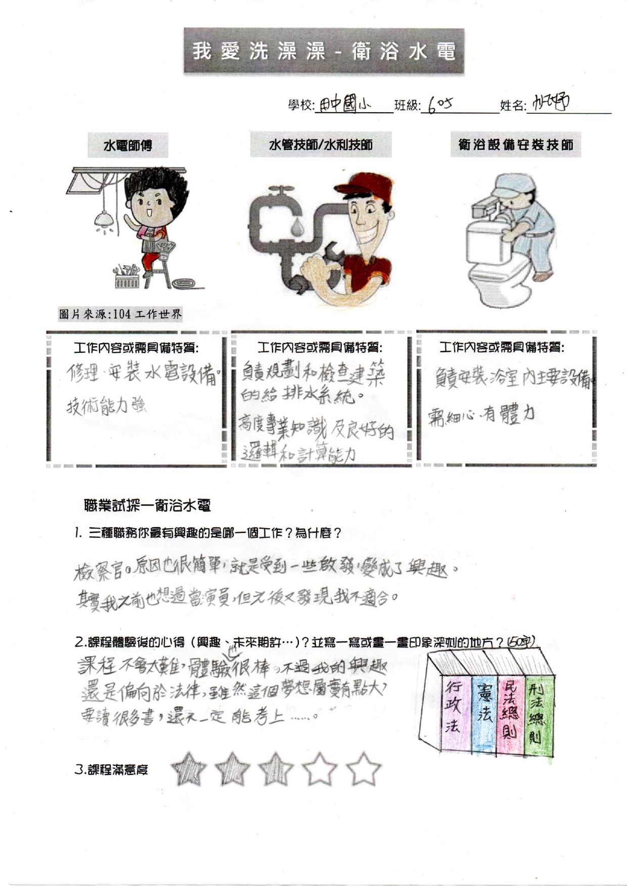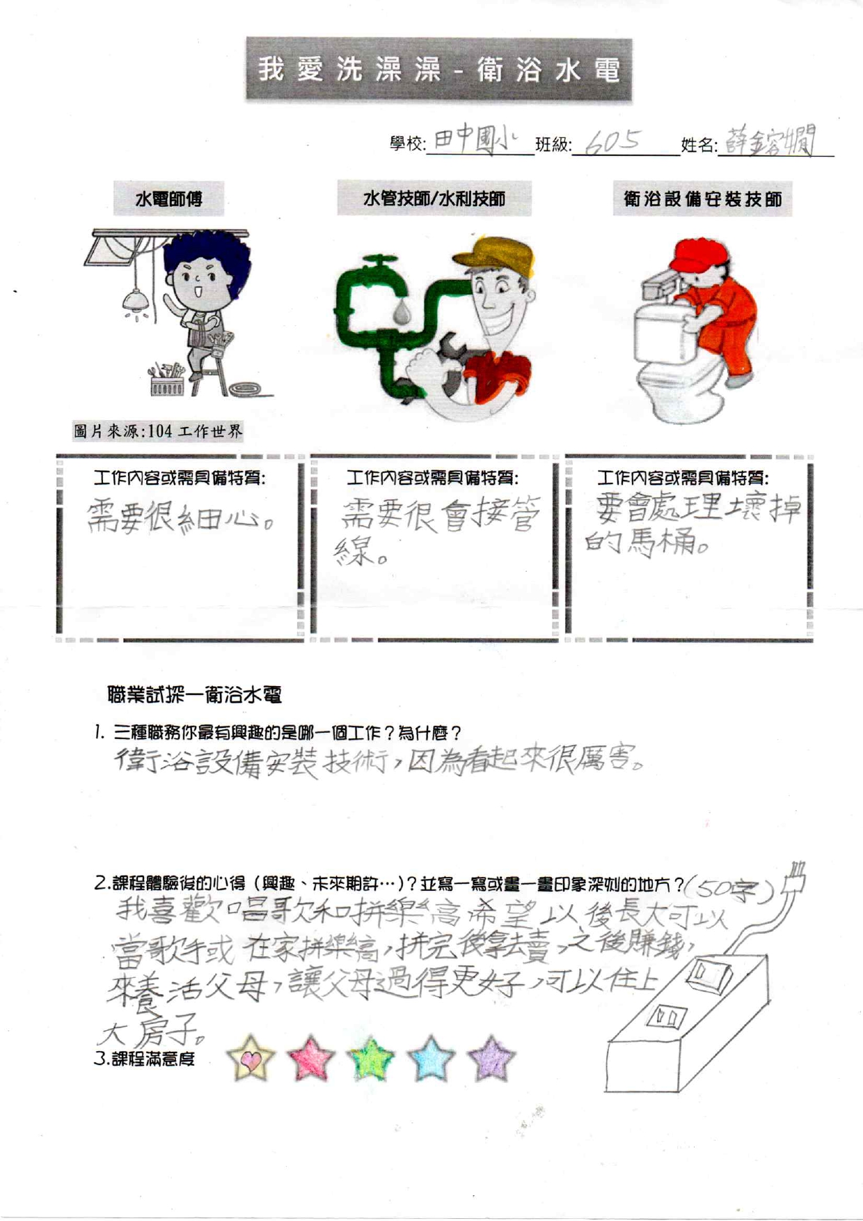 學生1:我覺得這個課程體驗很好,讓我們了解這些職業,我的興趣是畫畫,我可以彩繪在牆上,這個課程增加了我們的未來期望。