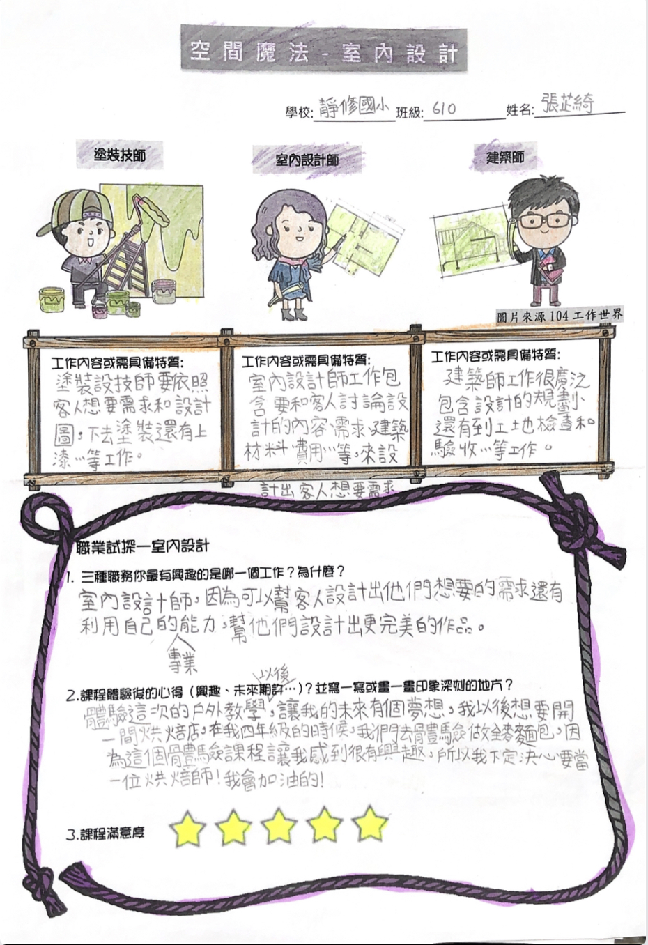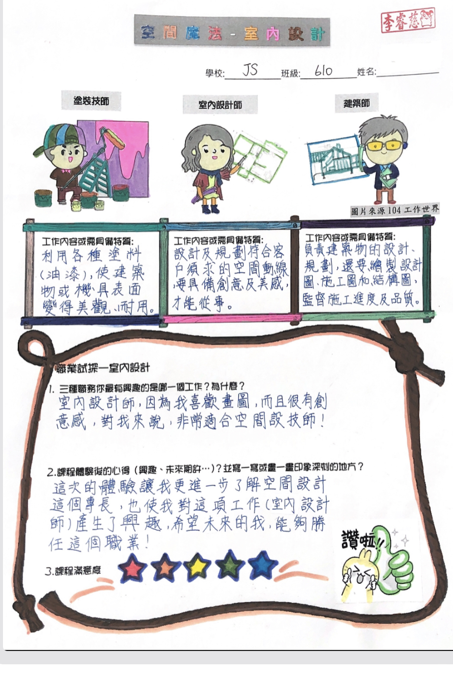 學生透過觀察與老師的示範,了解室內設計的技巧