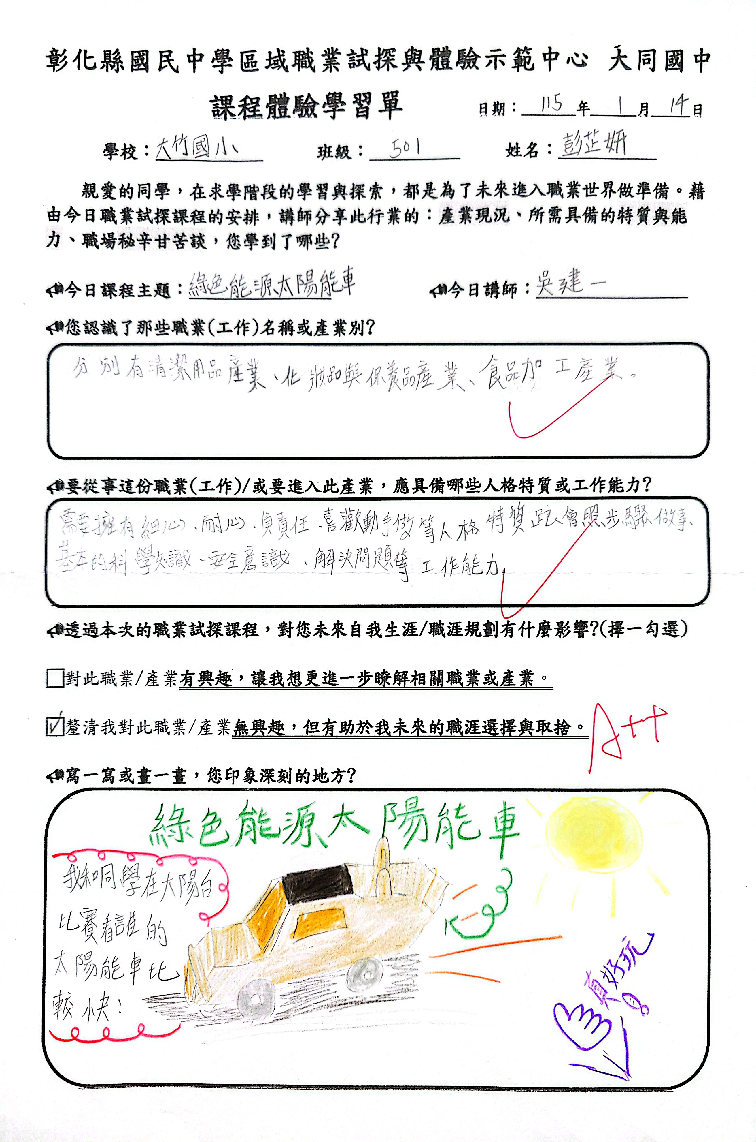 職探課程:綠能科技大步走-太陽能車