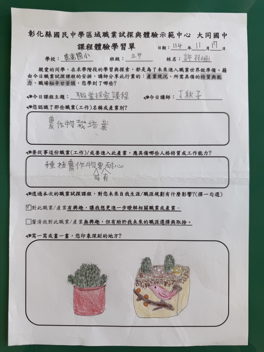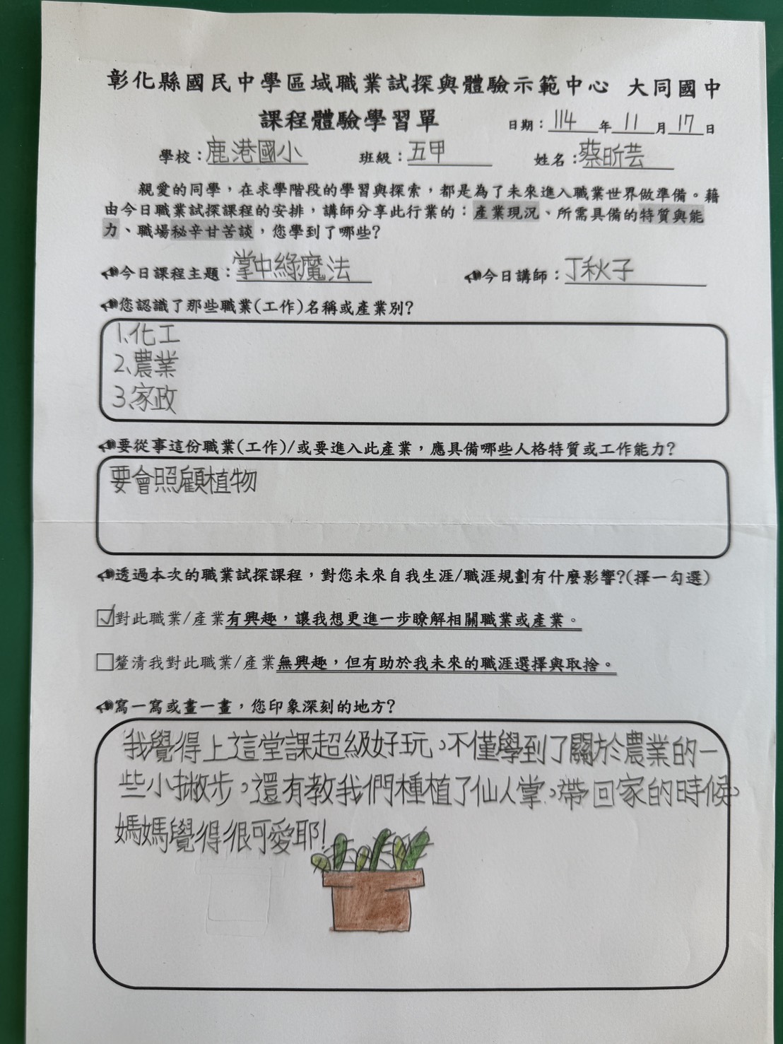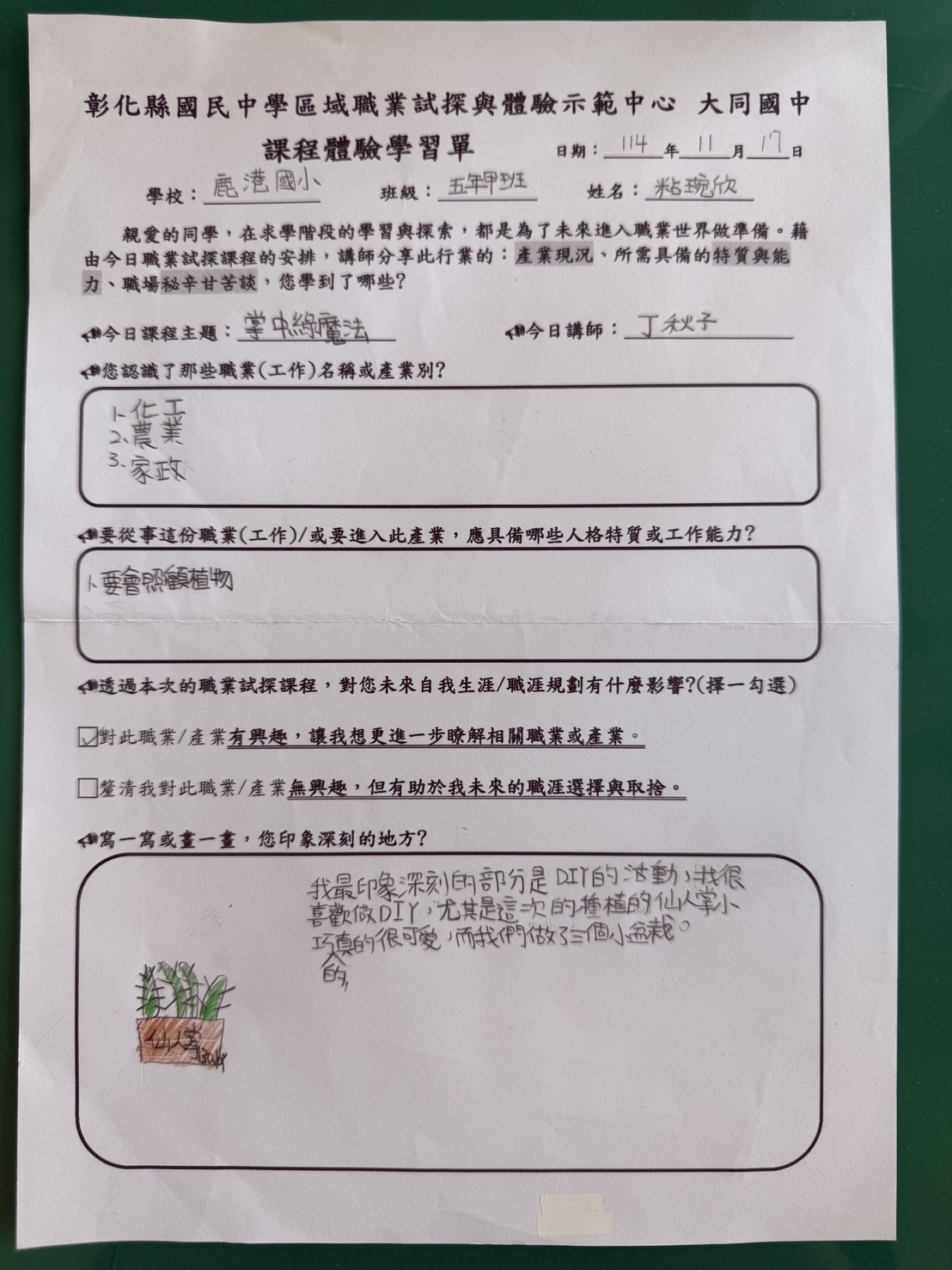 學生對這堂課的反應很好,感謝主辦單位讓孩子們有這麼棒的體驗,多認識一個職業。