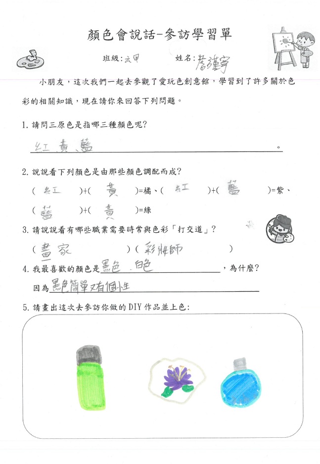 今天全校的師生一同參訪了愛玩色創意館。通過老師們的導覽與講解,我們認識到了許多顏色的調配方式及特色,也用自己喜歡的顏色進行豐富的DIY課程,真的是非常充實又開心的體驗。