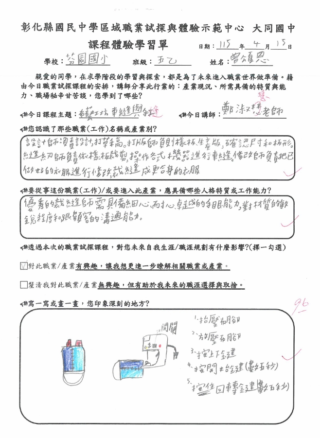 1.服飾製作相關職業與專業功能介紹-設計師/打版師/裁縫師/修改師。