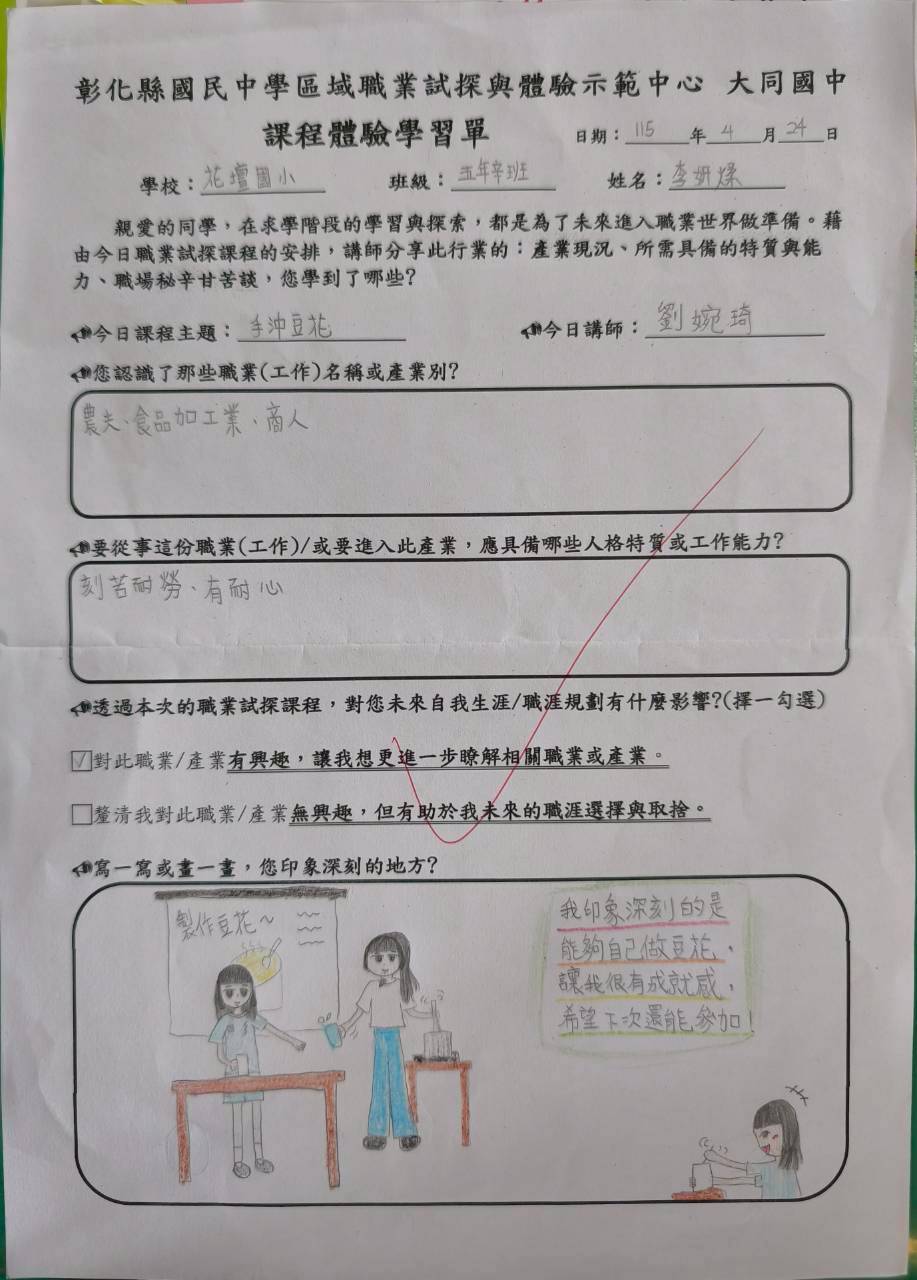 自己做豆花讓我覺得很有成就感,希望下次還能參加。
